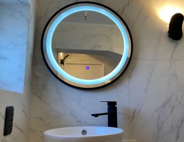 Montaje de espejos con iluminación LED para baños modernos. Instalación eléctrica certificada y acabados que transforman tu espacio.