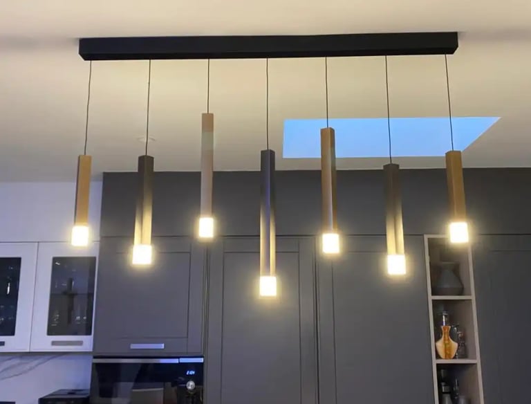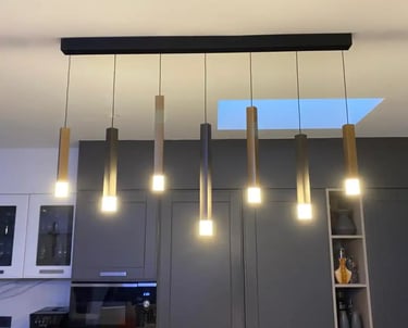 Instalación profesional de lámparas colgantes, apliques murales y sistemas de iluminación. Conexiones eléctricas seguras y acabados impecables.